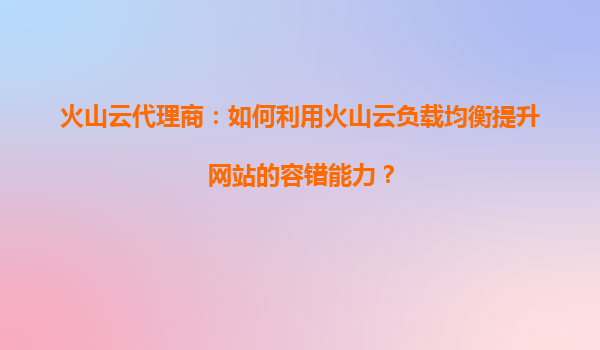 2025-09-03利用火山云負載均衡提升網(wǎng)站容錯能力的關(guān)鍵策略 引言:容錯能力在數(shù)字化時代的核心價值 在當今高并發(fā)的互聯(lián)網(wǎng)環(huán)境中,網(wǎng)站服務(wù)的穩(wěn)定性和可用性直接關(guān)系到用戶體驗與企業(yè)收益。火山云負載...