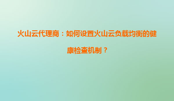 2025-09-03火山云代理商:如何設(shè)置火山云負載均衡的健康檢查機制? 引言 隨著企業(yè)上云的加速,負載均衡(LoadBalancer)成為保障業(yè)務(wù)高可用的核心組件之一。火山引擎作為字節(jié)跳動旗下的云計算...