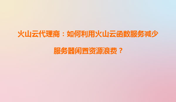 火山云代理商:如何利用火山云函數服務減少服務器閑置資源浪費? 一、引言:服務器資源浪費的行業痛點 在傳統服務器運維模式中,企業通常需要提前采購或租賃固定規格的服務器資源以應對業務峰值需...