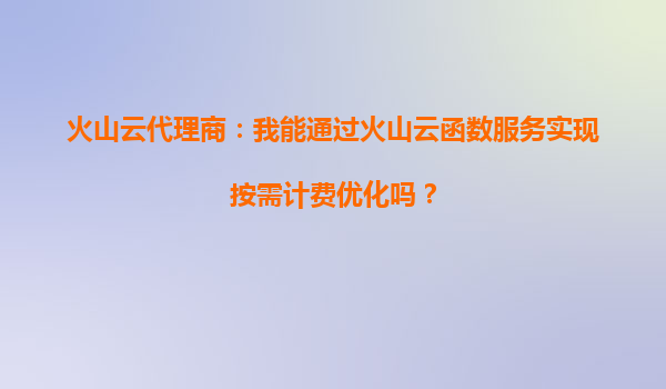 2025-08-29火山云代理商:我可以通過火山云函數服務優化應用負載均衡嗎? 一、火山云函數服務的核心優勢 火山引擎的云函數服務(Serverless)是一種無需管理服務器即可運行代碼的計算服務,其...
