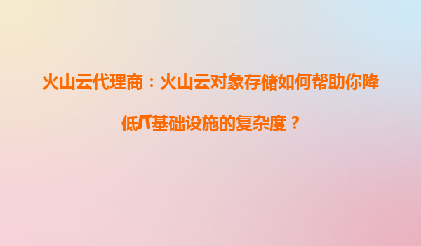 2025-08-27火山云代理商:火山云對象存儲能否為你的數(shù)字化轉(zhuǎn)型提供支持? 在當今數(shù)字化浪潮中,企業(yè)如何高效、安全地存儲和管理海量數(shù)據(jù)成為關(guān)鍵挑戰(zhàn)。火山引擎旗下的火山云對象存儲(VolcanoObjectStorage,簡稱VOS...