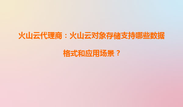 2025-08-26火山云代理商解析:火山云對(duì)象存儲(chǔ)支持的數(shù)據(jù)格式與應(yīng)用場(chǎng)景 一、火山云對(duì)象存儲(chǔ)支持的數(shù)據(jù)格式 火山云對(duì)象存儲(chǔ)(VolcanoEngineObjectStorage)作為一款高性...