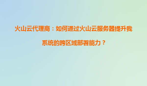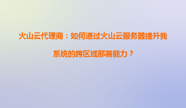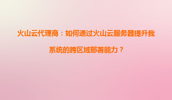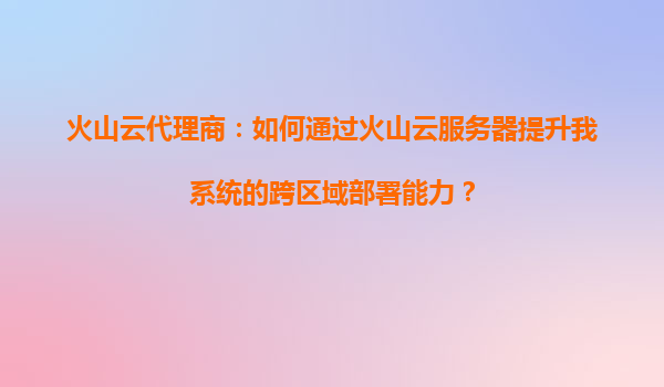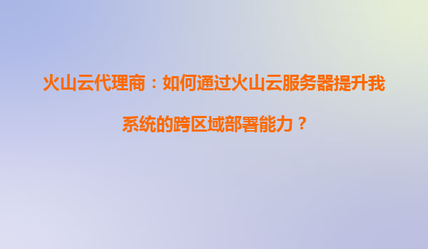 2025-08-24火山云代理商:如何通過(guò)火山云服務(wù)器提升系統(tǒng)跨區(qū)域部署能力 在當(dāng)今數(shù)字化時(shí)代,企業(yè)業(yè)務(wù)的快速擴(kuò)張對(duì)IT基礎(chǔ)設(shè)施提出了更高的要求,尤其是跨區(qū)域部署能力成為許多企業(yè)亟需解決的問(wèn)題。作為火山云代理商,我們深知火...