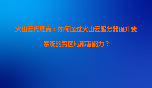 4008-020-360 火山云代理商:如何通過(guò)火山云服務(wù)器提升系統(tǒng)跨區(qū)域部署能力 在當(dāng)今數(shù)字化時(shí)代,企業(yè)業(yè)務(wù)的快速擴(kuò)張對(duì)IT基礎(chǔ)設(shè)施提出了更高的要求,尤其是跨區(qū)域部署能力成為許多企業(yè)亟需解決的問(wèn)題。作為火山云代理商,我們深知火...