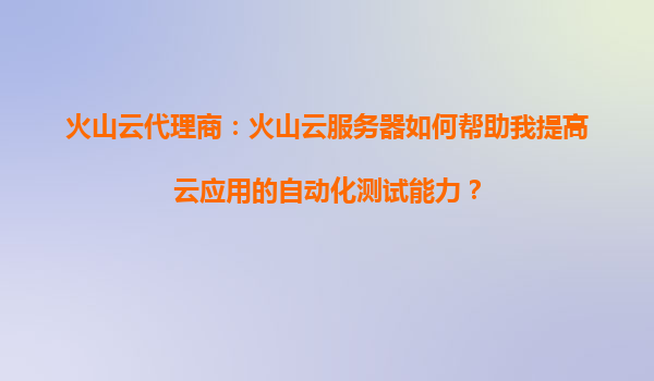 2025-08-23火山云代理商:火山云服務器如何幫助我提高云應用的自動化測試能力? 在當今快速發(fā)展的云計算時代,自動化測試已成為軟件開發(fā)過程中不可或缺的一部分。通過自動化測試,企業(yè)可以顯著提高測試效率、減少人為錯誤...