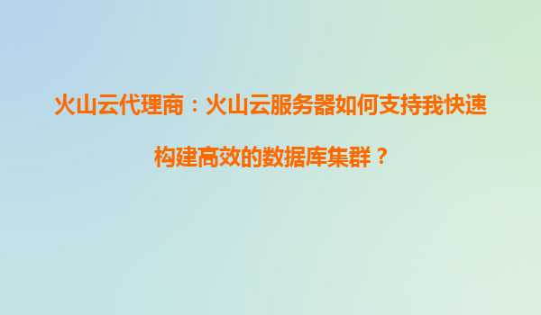 2025-08-23火山云代理商:火山云服務器如何支持快速構建高效的數據庫集群 在當今數據驅動的商業環境中,構建高效、可靠的數據庫集群是企業數字化轉型的關鍵。火山云服務器(VolcanoEngine)憑借其強大的基礎設施和豐富的...