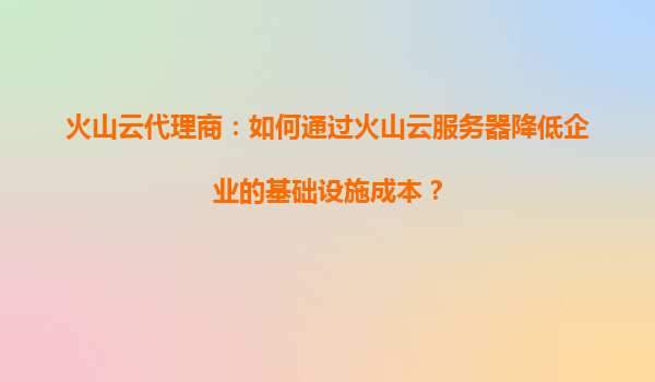 2025-08-22火山云代理商:如何通過火山云服務(wù)器降低企業(yè)的基礎(chǔ)設(shè)施成本? 一、企業(yè)基礎(chǔ)設(shè)施成本的核心痛點(diǎn) 在數(shù)字化時(shí)代,企業(yè)IT基礎(chǔ)設(shè)施的成本壓力日益凸顯。傳統(tǒng)自建機(jī)房或租賃IDC面臨以下挑戰(zhàn):...
