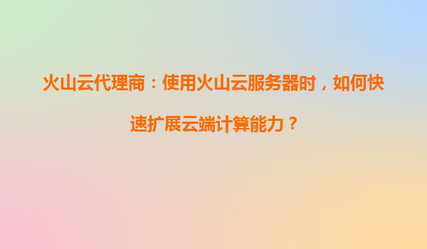 2025-08-22火山云代理商指南:如何快速擴(kuò)展云端計(jì)算能力 一、云計(jì)算彈性擴(kuò)展的核心需求 在數(shù)字化轉(zhuǎn)型浪潮中,企業(yè)業(yè)務(wù)常面臨流量突增、季節(jié)性高峰或突發(fā)算力需求。傳統(tǒng)IT架構(gòu)擴(kuò)容周...