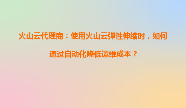 火山云代理商:使用火山云彈性伸縮如何通過自動化降低運維成本 在云計算時代,企業(yè)對于資源的彈性需求越來越高,如何高效、低成本地管理IT資源成為眾多企業(yè)面臨的挑戰(zhàn)。火山引擎(VolcanoEngine)作為字節(jié)跳動...