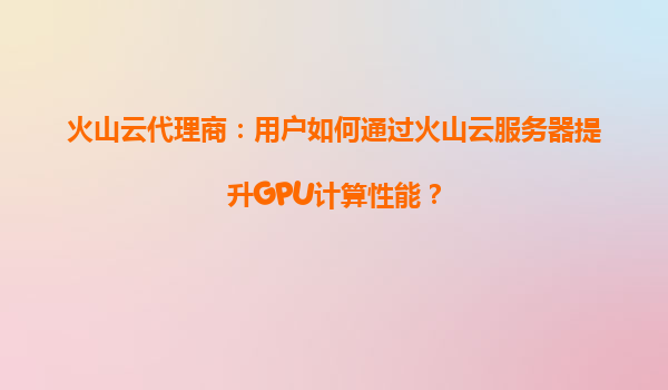 2025-08-17火山云代理商:用戶如何通過火山云服務器提升GPU計算性能? 一、GPU計算的重要性與市場需求 隨著人工智能、深度學習、大數(shù)據(jù)分析和科學計算的快速發(fā)展,對高性...