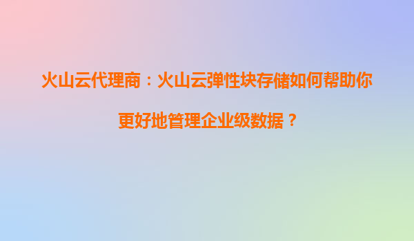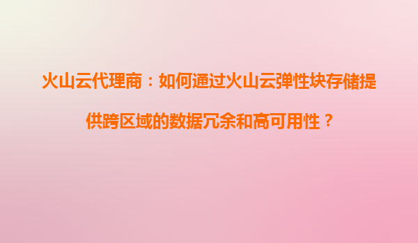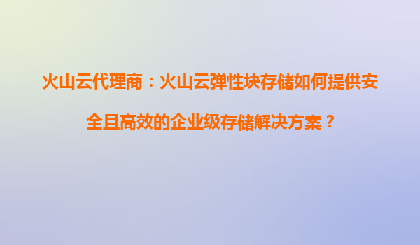 2025-08-16火山云代理商:如何利用火山云彈性塊存儲的增量備份功能節(jié)省存儲空間? 一、火山云彈性塊存儲的優(yōu)勢 火山引擎作為字節(jié)跳動旗下的云計算品牌,其彈性塊存儲(EBS...