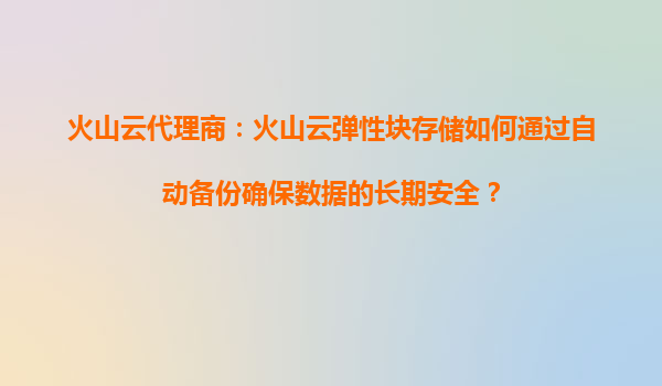 2025-08-16火山云代理商:火山云彈性塊存儲(chǔ)如何通過自動(dòng)備份確保數(shù)據(jù)的長期安全? 一、火山云彈性塊存儲(chǔ)的核心優(yōu)勢(shì) 火山云彈性塊存儲(chǔ)(EBS)是火山引擎提供的高性能、高可靠的塊存儲(chǔ)服務(wù),適用于云服務(wù)器、容器等多...