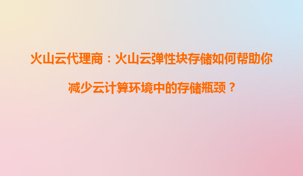 2025-08-14火山云代理商:火山云彈性塊存儲(chǔ)如何幫助你減少云計(jì)算環(huán)境中的存儲(chǔ)瓶頸? 一、云計(jì)算環(huán)境中的存儲(chǔ)瓶頸挑戰(zhàn) 在云計(jì)算環(huán)境中,存儲(chǔ)瓶頸是許多企業(yè)面臨的常見(jiàn)問(wèn)題。隨著業(yè)務(wù)規(guī)模的擴(kuò)大和數(shù)據(jù)量的快速增長(zhǎng),傳統(tǒng)存...