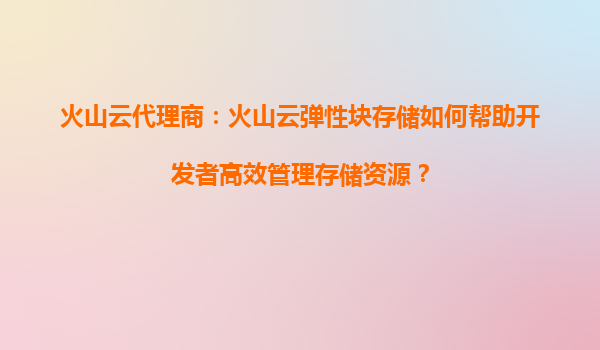 2025-08-14火山云代理商:火山云彈性塊存儲(chǔ)如何幫助開(kāi)發(fā)者高效管理存儲(chǔ)資源? 引言:存儲(chǔ)資源管理的挑戰(zhàn) 在現(xiàn)代云計(jì)算環(huán)境中,開(kāi)發(fā)者常面臨存儲(chǔ)資源管理的痛點(diǎn):如何平衡...