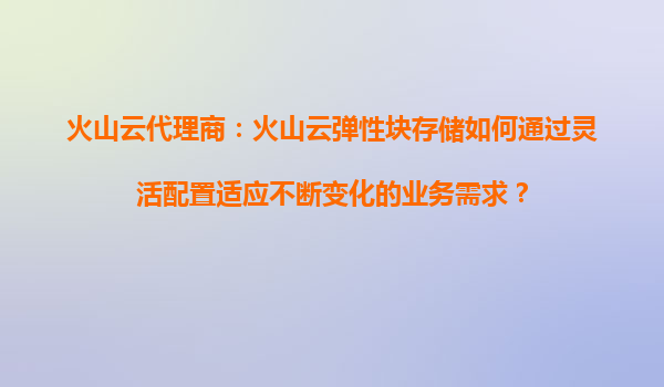 2025-08-14火山云代理商:火山云彈性塊存儲(chǔ)如何通過(guò)靈活配置適應(yīng)不斷變化的業(yè)務(wù)需求? 引言 在數(shù)字化轉(zhuǎn)型加速的今天,企業(yè)對(duì)云存儲(chǔ)的需求日益多樣化,業(yè)務(wù)場(chǎng)景的復(fù)雜性要求存儲(chǔ)服務(wù)具備高度的靈活性和可擴(kuò)展性。...