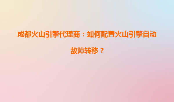 2025-08-06成都火山引擎代理商:如何配置火山引擎自動故障轉移? 火山引擎的核心優勢 火山引擎作為字節跳動旗下的云計算服務平臺,憑借其高性能、高可靠性和彈性擴展能力,成為企業數字化轉型的重要助力。其分布式架...