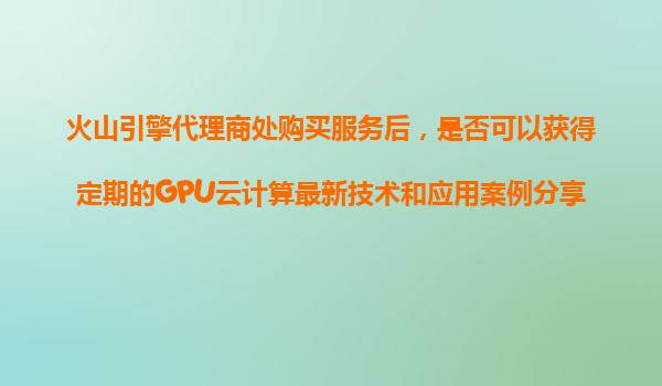 2025-11-10通過(guò)火山引擎代理商購(gòu)買(mǎi)服務(wù)后,如何獲取定期的GPU云計(jì)算最新技術(shù)與應(yīng)用案例分享? 一、火山引擎代理商的價(jià)值延伸 選擇通過(guò)火山引擎官方認(rèn)證的代理商購(gòu)買(mǎi)云計(jì)算服務(wù),不...