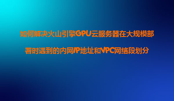 2025-11-08如何解決火山引擎GPU云服務(wù)器在大規(guī)模部署時遇到的內(nèi)網(wǎng)IP地址和VPC網(wǎng)絡(luò)段劃分問題? 在云計算和大規(guī)模AI應(yīng)用快速發(fā)展的今天,高效穩(wěn)定的網(wǎng)絡(luò)架構(gòu)對業(yè)務(wù)成功至關(guān)重要。火山引擎作為字節(jié)跳動旗下的云服務(wù)平臺,提...