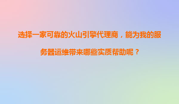 2025-11-06選擇一家可靠的火山引擎代理商,能為我的服務(wù)器運(yùn)維帶來哪些實(shí)質(zhì)幫助? 一、火山引擎的核心優(yōu)勢(shì)解析 作為字節(jié)跳動(dòng)旗下的云計(jì)算服務(wù)品牌,火山引擎具備以下關(guān)鍵技術(shù)優(yōu)勢(shì): 全球分布式基礎(chǔ)設(shè)施:覆蓋亞太...