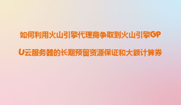 2025-11-06如何利用火山引擎代理商爭(zhēng)取到火山引擎GPU云服務(wù)器的長(zhǎng)期預(yù)留資源保證和大額計(jì)算券? 隨著人工智能、大數(shù)據(jù)和深度學(xué)習(xí)的發(fā)展,企業(yè)對(duì)高性能GPU云服務(wù)器的需求日益增長(zhǎng)。火山引擎作為字節(jié)跳動(dòng)旗下的云...