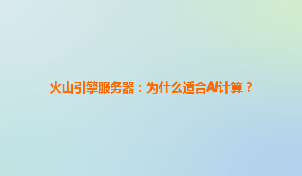 2025-04-16火山引擎服務器:為什么適合AI計算? 一、AI計算的核心需求與火山引擎的匹配性 AI計算需要強大的算力支持、高效的數據處理能力以及靈活的擴展性。火山引擎服務器通過以下特性完美契合這些需求...