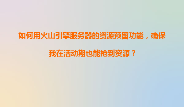 2025-11-06如何用火山引擎服務(wù)器的資源預(yù)留功能,確保我在活動(dòng)期也能搶到資源? 一、為什么活動(dòng)期資源緊張? 在電商大促、游戲新版本上線等高峰期,服務(wù)器資源需求會(huì)瞬間暴漲。如果沒有提前規(guī)劃,...