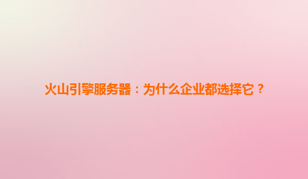2025-04-13火山引擎服務器:為什么企業都選擇它? 在數字化轉型的浪潮中,企業對云計算服務的需求日益增長。火山引擎作為字節跳動旗下的企業級技術服務平臺,憑借其強大的技術積累和生態優勢,成為眾多企業的...