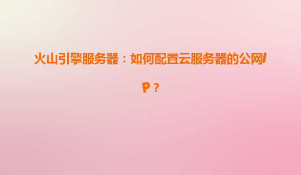 2025-04-09火山引擎云服務(wù)器公網(wǎng)IP配置指南:高效、安全、靈活 一、火山引擎在公網(wǎng)IP配置中的核心優(yōu)勢 火山引擎作為字節(jié)跳動旗下的云服務(wù)平臺,在公網(wǎng)IP管理上具備以下差異化優(yōu)勢: 彈性IP池技術(shù):支持...