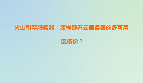 2025-04-08火山引擎服務(wù)器:如何部署云服務(wù)器的多可用區(qū)備份? 一、多可用區(qū)備份的重要性 在云計(jì)算場景中,多可用區(qū)(Multi-AZ)備份是保障業(yè)務(wù)連續(xù)性的核心策略之一。通過將云服務(wù)器實(shí)例和數(shù)據(jù)分布在...