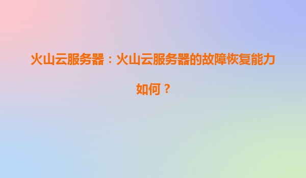 2025-04-01火山云服務(wù)器的故障恢復(fù)能力解析:技術(shù)優(yōu)勢(shì)與生態(tài)協(xié)同 一、云計(jì)算時(shí)代下,故障恢復(fù)能力為何至關(guān)重要? 在數(shù)字化轉(zhuǎn)型加速的今天,企業(yè)業(yè)務(wù)對(duì)云服務(wù)的連續(xù)性和穩(wěn)定性要求達(dá)到前所未有的高...