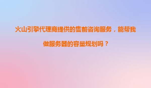 2025-11-04火山引擎代理商售前咨詢如何助力企業(yè)精準服務器容量規(guī)劃 企業(yè)服務器規(guī)劃的痛點與挑戰(zhàn) 在數(shù)字化轉型浪潮中,企業(yè)IT基礎設施面臨著業(yè)務快速增長帶來的容量規(guī)劃難題。傳統(tǒng)規(guī)劃方式常因經驗主義導致資源浪費或性...