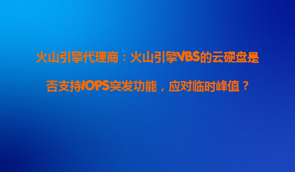 2025-10-31火山引擎代理商解析:火山引擎VBS云硬盤的IOPS突發(fā)功能如何應(yīng)對臨時峰值? 一、火山引擎VBS云硬盤的核心特性 火山引擎作為字節(jié)跳動旗下的云計算品牌,其云硬盤服務(wù)(VolcanoBlockS...