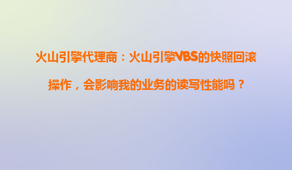 2025-10-31火山引擎VBS快照回滾操作對業(yè)務(wù)讀寫性能的影響解析 在日常業(yè)務(wù)運維中,數(shù)據(jù)安全與業(yè)務(wù)連續(xù)性是企業(yè)最關(guān)心的核心問題之一。火山引擎提供的云硬盤服務(wù)(VBS)通過快照功能為用戶提供了高效的數(shù)據(jù)保護方案,而...
