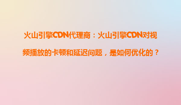 2025-10-22火山引擎CDN如何優(yōu)化視頻播放的卡頓與延遲問題? 引言:視頻體驗(yàn)的挑戰(zhàn)與需求 在數(shù)字化時代,視頻已成為用戶獲取信息與娛樂的核心載體,但卡頓、延遲等問題直接...