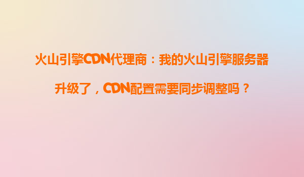 2025-10-22火山引擎CDN代理商:我的火山引擎服務(wù)器升級了,CDN配置需要同步調(diào)整嗎? 引言 在數(shù)字化時代,高效的網(wǎng)絡(luò)加速和內(nèi)容分發(fā)服務(wù)(CDN)對于企業(yè)來說至關(guān)重要。火山引擎作為字節(jié)跳動旗下的云服務(wù)平臺,提供了強(qiáng)...