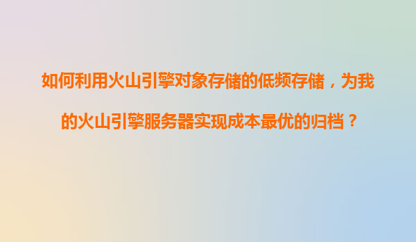 2025-11-18如何利用火山引擎對象存儲的低頻存儲,為服務(wù)器實現(xiàn)成本最優(yōu)的歸檔方案 一、火山引擎低頻存儲的核心價值與適用場景 火山引擎對象存儲(TOS)提供的低頻訪問存儲類型,是針對訪問頻率較低(如每月訪問1-2次...
