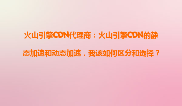 2025-10-20火山引擎CDN靜態(tài)加速與動(dòng)態(tài)加速的區(qū)分與選擇指南 一、靜態(tài)加速與動(dòng)態(tài)加速的核心區(qū)別 火山引擎CDN提供靜態(tài)加速和動(dòng)態(tài)加速兩種服務(wù),二者的核心差異在于處理內(nèi)容類型和優(yōu)化目標(biāo): 靜態(tài)加速適用于可緩存的...