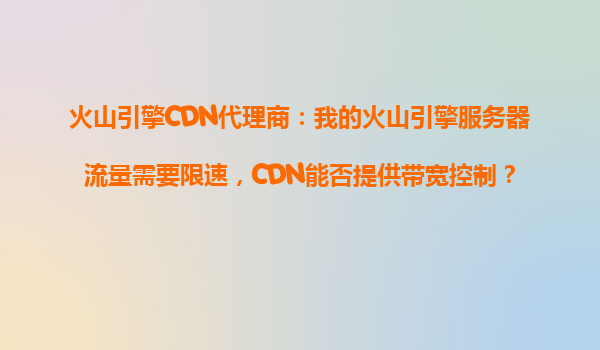 2025-10-20火山引擎CDN代理商的流量限速需求解決方案 對(duì)于火山引擎代理商的服務(wù)器流量管理需求,火山引擎CDN不僅能提供高效的帶寬控制能力,還能幫助用戶優(yōu)化成本、提升服務(wù)質(zhì)量。以下是其核心功能與優(yōu)勢(shì)詳解。 ...