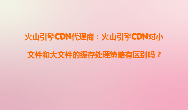 2025-10-18火山引擎CDN代理商詳解:火山引擎CDN對(duì)小文件與大文件的緩存處理策略 一、引言 在當(dāng)今數(shù)字化時(shí)代,內(nèi)容分發(fā)網(wǎng)絡(luò)(CDN)已成為提升用戶體驗(yàn)、優(yōu)化網(wǎng)站性能的關(guān)鍵技術(shù)。作為字節(jié)跳動(dòng)旗下的云服務(wù)品牌,火山引擎CDN憑...