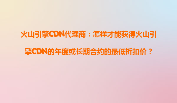 4008-020-360 火山引擎CDN代理商:怎樣才能獲得火山引擎CDN的年度或長(zhǎng)期合約的最低折扣價(jià)? 一、火山引擎CDN的核心優(yōu)勢(shì) 火山引擎CDN作為字節(jié)跳動(dòng)旗下的云計(jì)算服務(wù)品牌,憑借其強(qiáng)大的基礎(chǔ)設(shè)施和技術(shù)能力,在內(nèi)容分發(fā)...