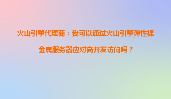 2025-10-10火山引擎代理商:火山引擎彈性裸金屬服務器能保障我的業(yè)務高可用嗎? 一、什么是彈性裸金屬服務器? 火山引擎彈性裸金屬服務器(EBM)是一種結合了物理機性能和云服務器彈性的新型計算服...