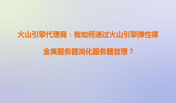 2025-10-10火山引擎代理商:我如何通過火山引擎彈性裸金屬服務器簡化服務器管理? 一、傳統(tǒng)服務器管理的痛點 在數(shù)字化轉型浪潮中,企業(yè)IT基礎設施面臨諸多挑戰(zhàn):物理服務器采購周期長、資源利用率...