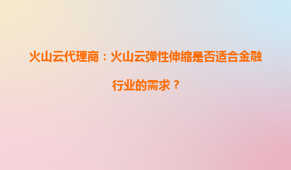 2025-10-05火山云代理商:火山云彈性伸縮是否適合金融行業(yè)的需求? 一、金融行業(yè)的IT需求特點(diǎn) 金融行業(yè)對(duì)IT基礎(chǔ)設(shè)施的要求極為嚴(yán)格,主要體現(xiàn)在以下幾個(gè)方面: 高可用性:金融業(yè)務(wù)需要7×24小時(shí)不間斷運(yùn)...