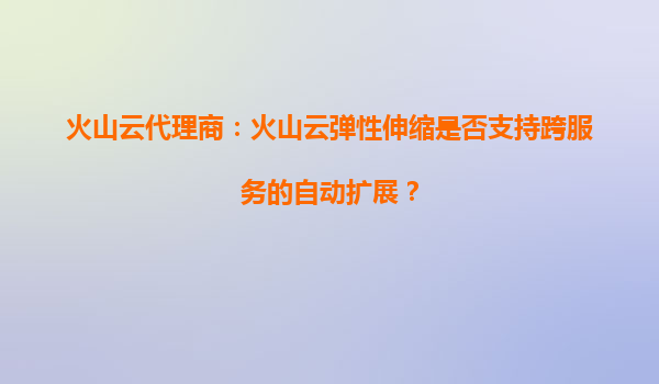 2025-10-04火山云代理商:火山云彈性伸縮是否支持跨服務(wù)的自動(dòng)擴(kuò)展? 引言 在云計(jì)算時(shí)代,彈性伸縮(AutoScaling)已成為企業(yè)優(yōu)化資源利用、降低成本的關(guān)鍵技術(shù)。火山引...