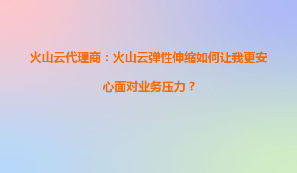2025-10-02火山云代理商:如何高效監(jiān)控火山云彈性伸縮的運(yùn)行情況? 一、火山云彈性伸縮的核心優(yōu)勢 火山引擎的彈性伸縮服務(wù)(AutoScaling)通過自動(dòng)化資源調(diào)度,幫助企業(yè)應(yīng)對業(yè)務(wù)流量波動(dòng),其核心優(yōu)勢包括: ...
