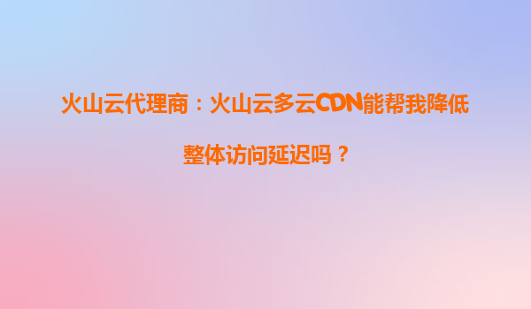 2025-09-30火山云代理商:火山云多云CDN如何降低整體訪問延遲? 一、訪問延遲的挑戰與多云CDN的價值 在數字化時代,用戶對網站或應用的訪問速度要求越來越高,延遲每增加100毫秒都可能導致用戶...