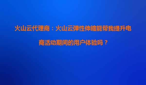2025-10-01火山云代理商:火山云彈性伸縮能幫我提升電商活動期間的用戶體驗嗎? 一、電商活動面臨的挑戰與彈性伸縮的需求 電商大促期間(如雙11、618),用戶訪問量往往呈現爆發式增長,這對服務器資源、數據庫負載和...
