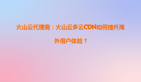 2025-09-29火山云代理商:火山云多云CDN如何提升海外用戶體驗? 一、海外用戶體驗的挑戰(zhàn) 隨著全球化趨勢的加速,越來越多的企業(yè)開始拓展海外市場。然而,全球范圍內(nèi)的網(wǎng)絡(luò)環(huán)境復(fù)雜多樣,海外用戶在訪問企業(yè)...