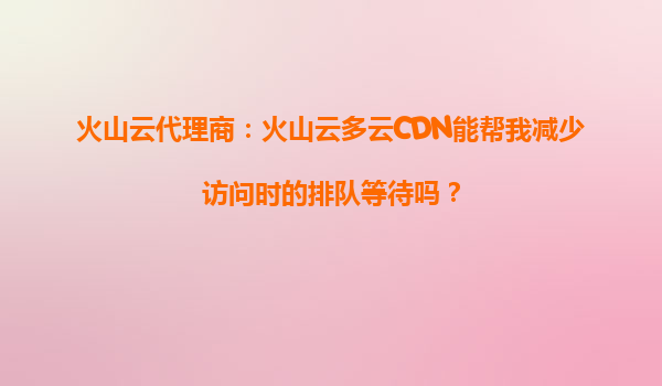 4008-020-360 火山云代理商:火山云多云CDN能幫我減少訪問時的排隊等待嗎? 一、什么是火山云多云CDN? 火山云多云CDN(內(nèi)容分發(fā)網(wǎng)絡(luò))是火山引擎推出的一項基于分布式節(jié)點的加速服務(wù),通過將內(nèi)容緩存至全球多...