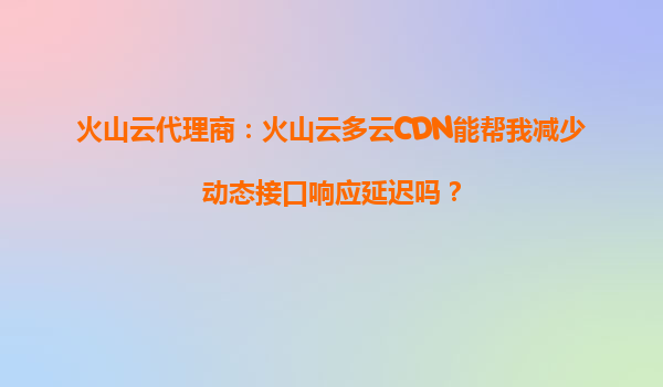 2025-09-29火山云代理商:火山云多云CDN能幫我減少動態(tài)接口響應(yīng)延遲嗎? 一、動態(tài)接口延遲的挑戰(zhàn)與多云CDN的解決方案 動態(tài)接口響應(yīng)延遲是許多應(yīng)用開發(fā)者面臨的常見問題,尤其在跨地域訪問或高并發(fā)場景下更為明顯。傳...